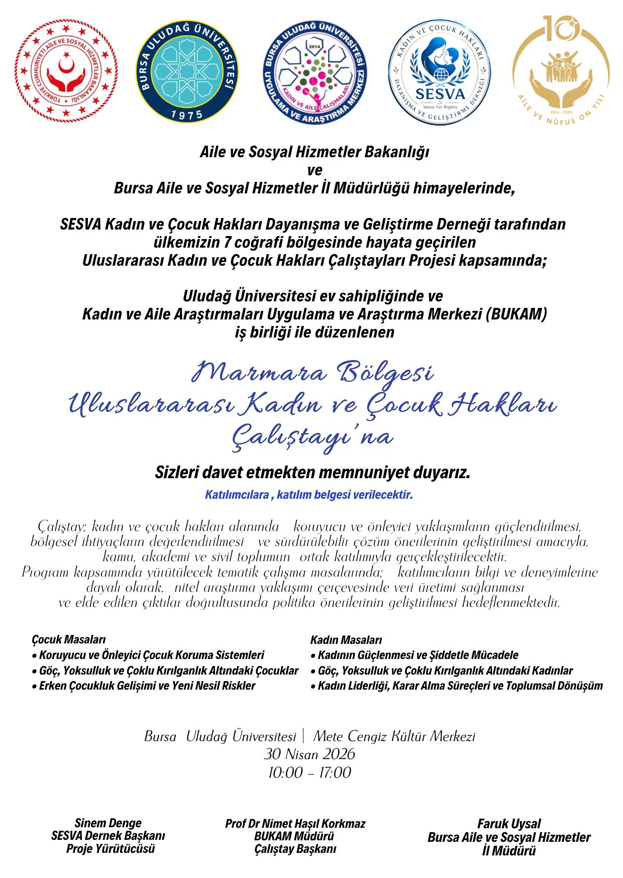 Marmara Bölgesi Uluslararası Kadın Ve Çocuk Hakları Çalıştayı