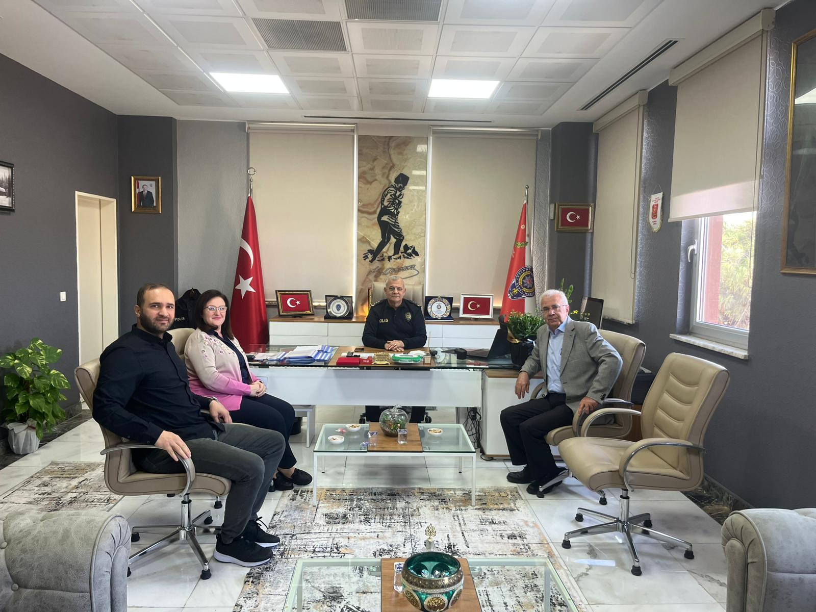 Ziyarette, MYO Müdürü Prof. Dr. Mehmet Öz, Müdür Yardımcıları Öğr. Gör. Dr. Fatih Bilici ve Öğr. Gör. Saadet Dilek Yıldız yer aldı. Görüşmede, kurumlar arası iş birliği olanakları, öğrencilere yönelik sosyal sorumluluk ve farkındalık projeleri ile güvenli kampüs konuları üzerine fikir alışverişinde bulunuldu.