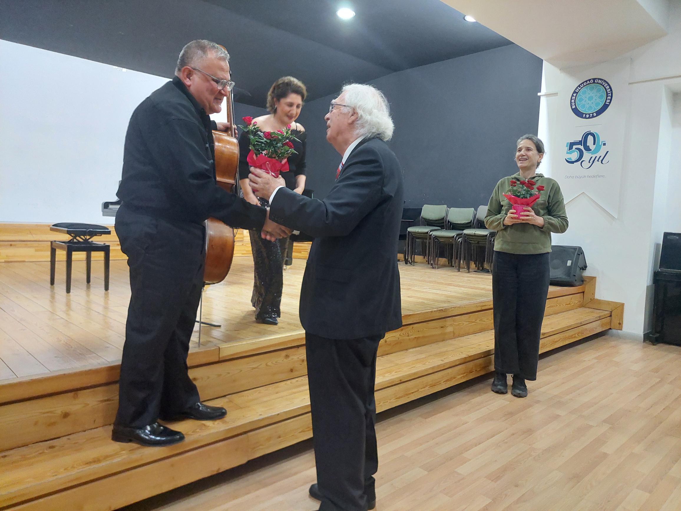Konsere, Eğitim Fakültesi Dekan Yardımcısı ve Güzel Sanatlar Bölümü Başkanı Prof.Dr. Erol Demirbatır da katılım sağladı. Etkinlik sonunda sanatçılara çiçek takdimi, müzik eğitimi ailemizin emekli öğretim üyelerinden Prof. Dr. İsmail Bozkaya tarafından gerçekleştirildi.
