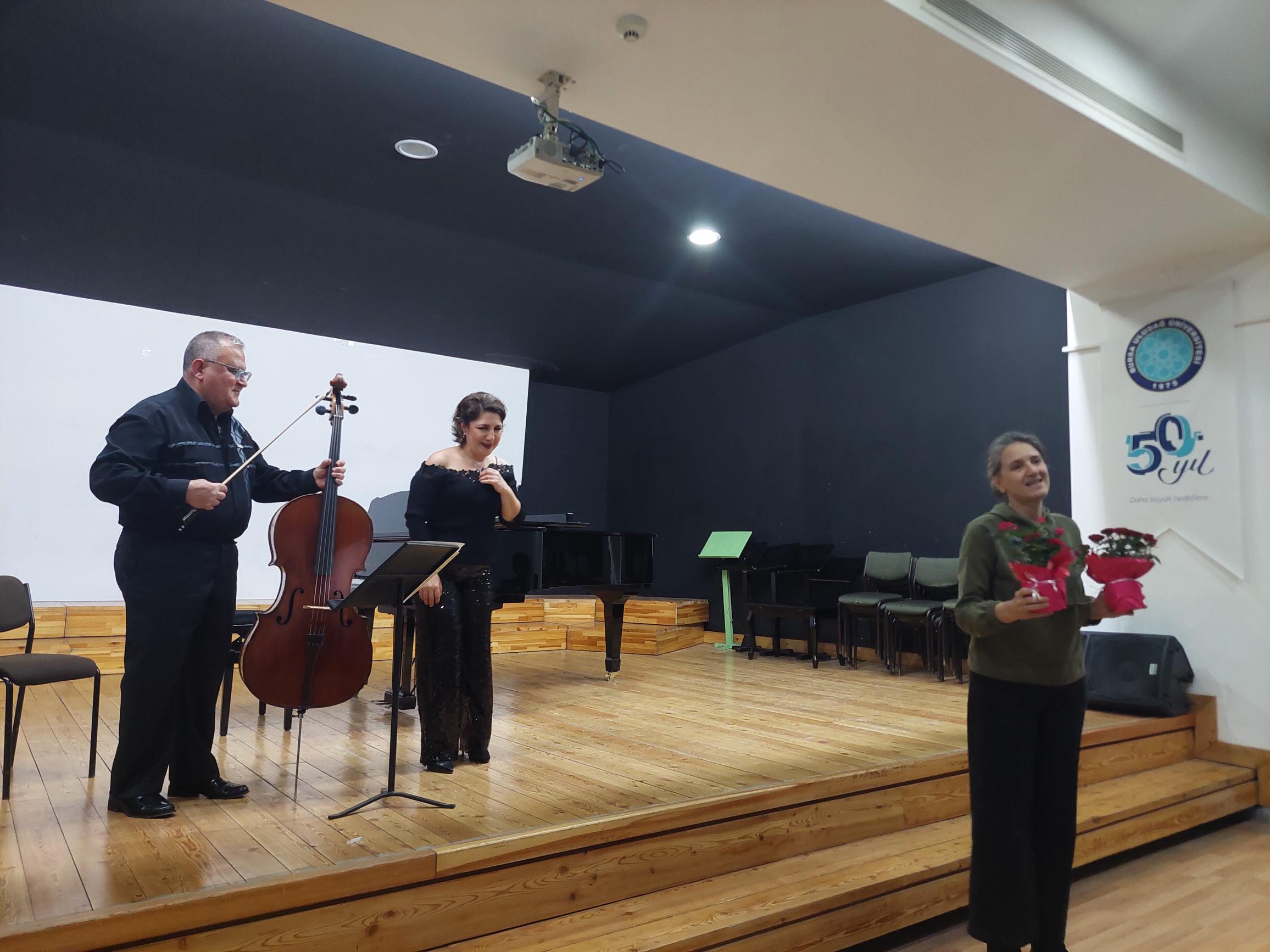 Emekli hocamız Öğr. Gör. Elhan Necef ve Öğr. Gör. Lale Necef'in sahne aldığı program Azerbaycan bestecilerinin seçkin eserleriyle dinleyicilere etkileyici bir müzik deneyimi sundu.