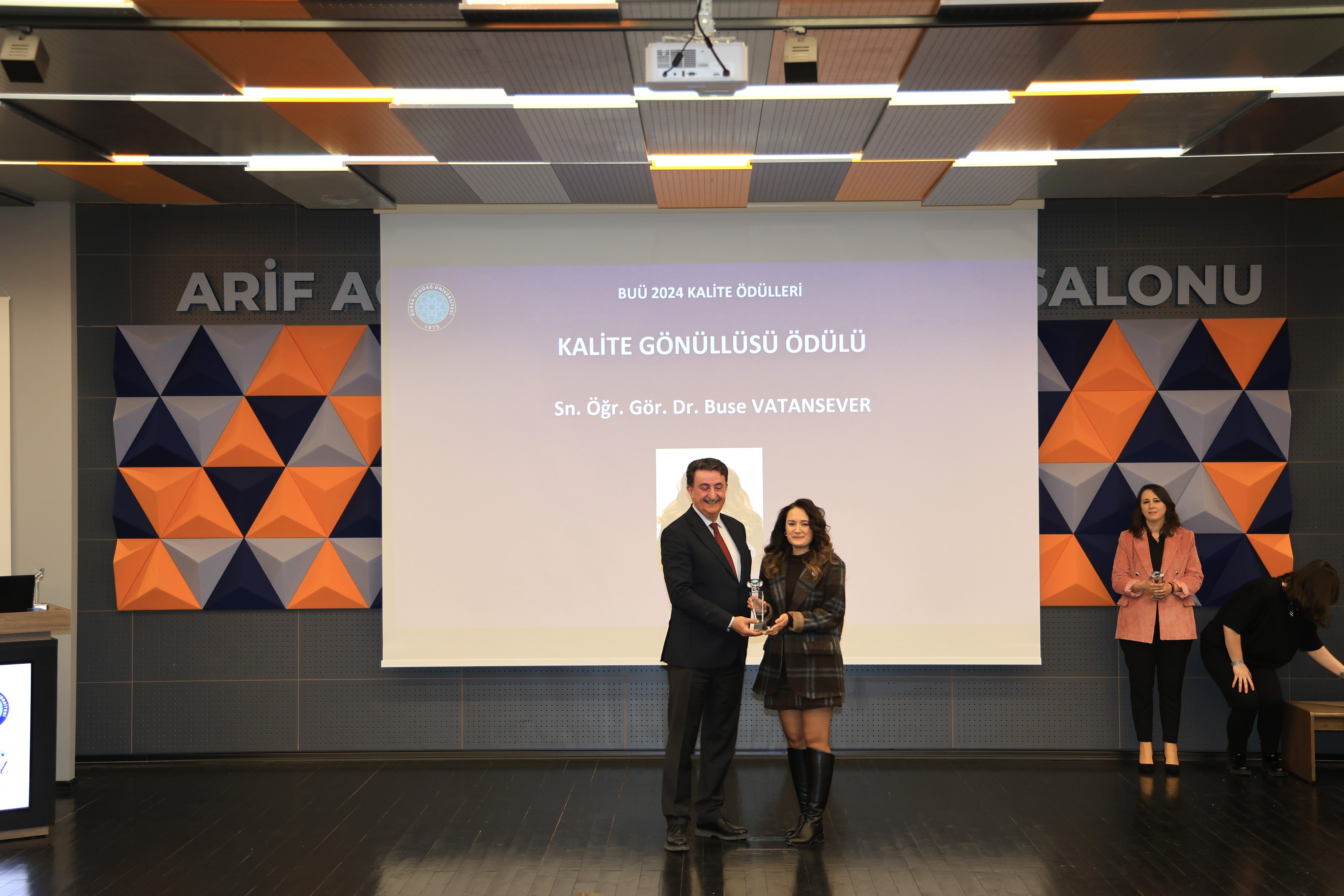 Bu kapsamda, kalite süreçlerine sundukları özverili katkılar nedeniyle Öğr. Gör. Dr. Buse VATANSEVER ve Ayşe ÖZTÜRK, Kalite Gönüllüsü Ödülü almaya hak kazanmıştır.