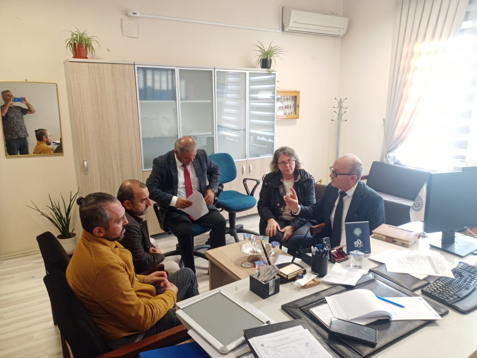 Ziyaret kapsamında ilk olarak OYAÇ MYO Müdür Yardımcısı Öğr. Gör. Dr. Kadir Burak OLGUN, Yönetim Kurulu Üyeleri Doç. Dr. Bilsay PASTAKKAYA ve Öğr. Gör. Dr. Yusuf Alptekin TÜRKKAN ile MYO Sekreteri Ersoy KÖSA’nın katılımıyla bir değerlendirme toplantısı gerçekleştirildi. Toplantıda, okul genelinde yürütülen iş sağlığı ve güvenliği uygulamaları hakkında bilgi alışverişinde bulunuldu ve iyileştirme alanları ele alındı.