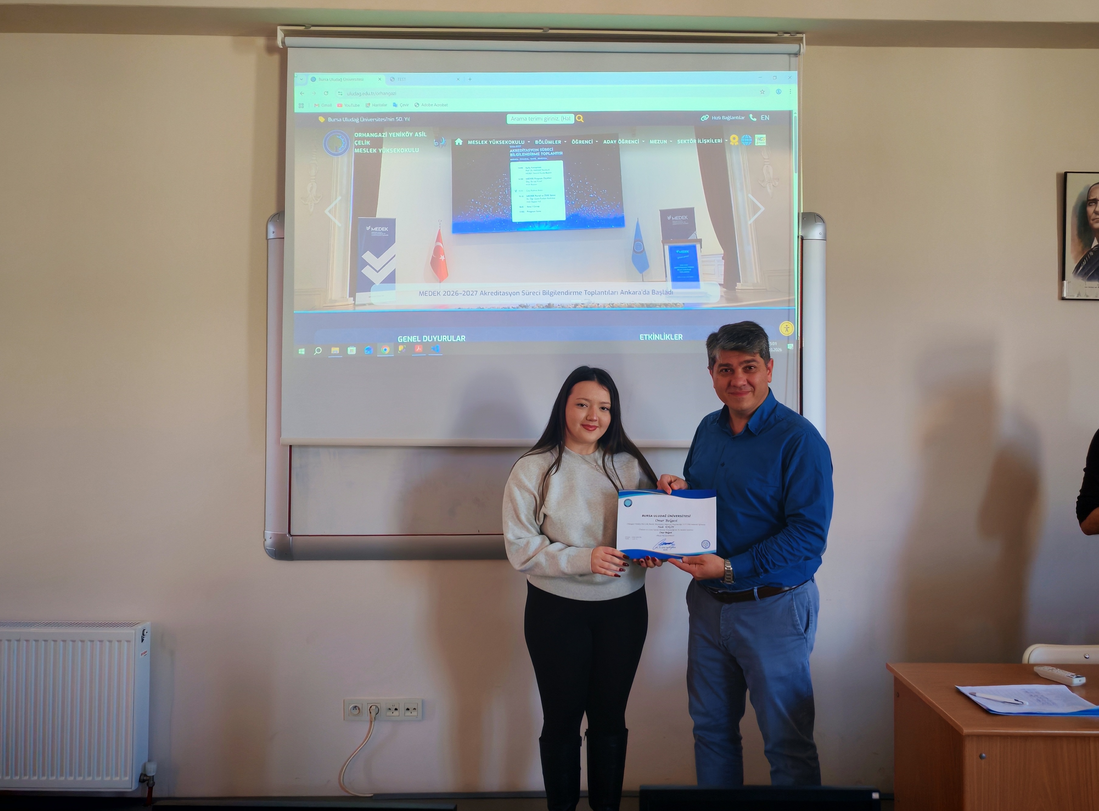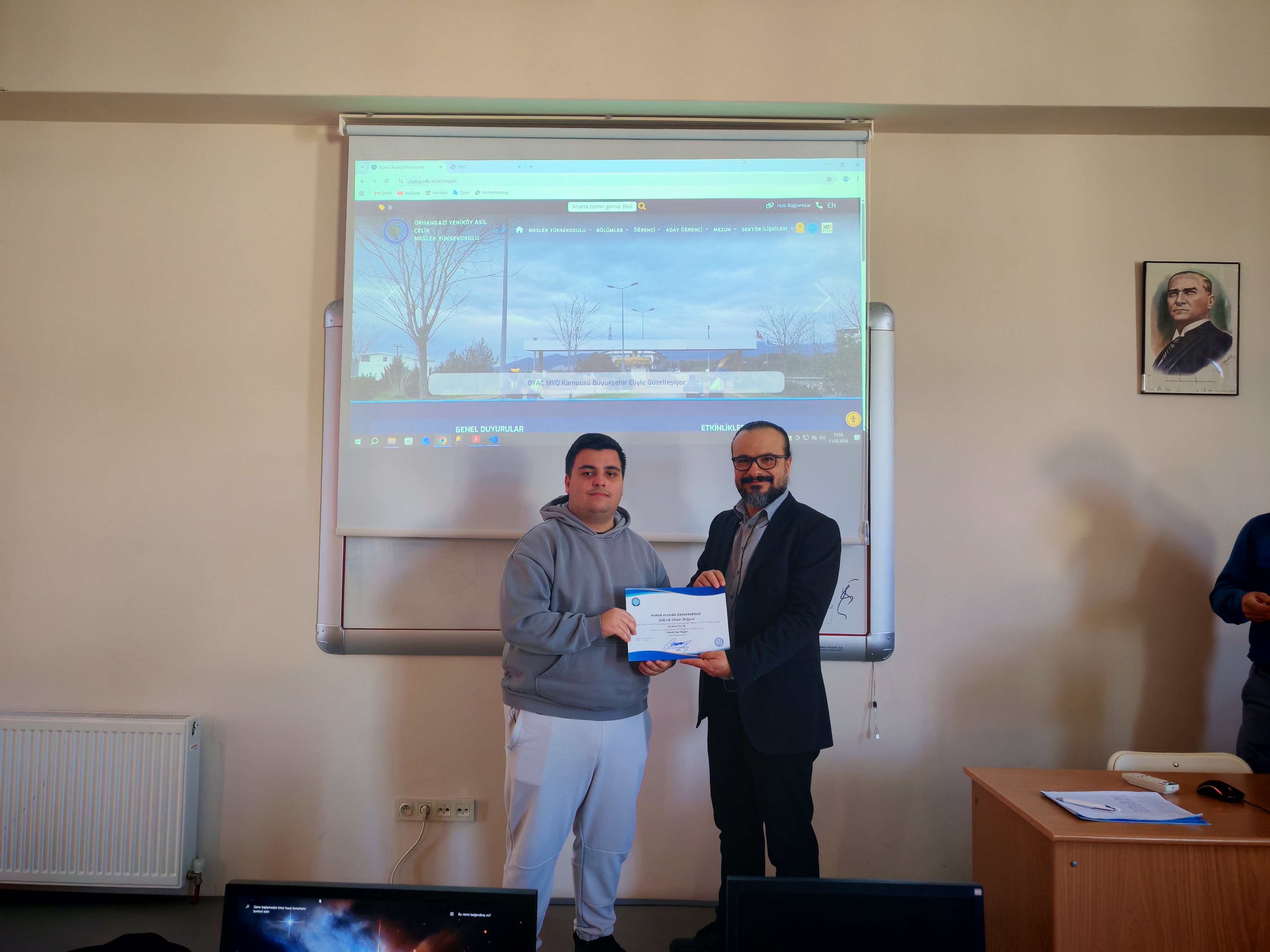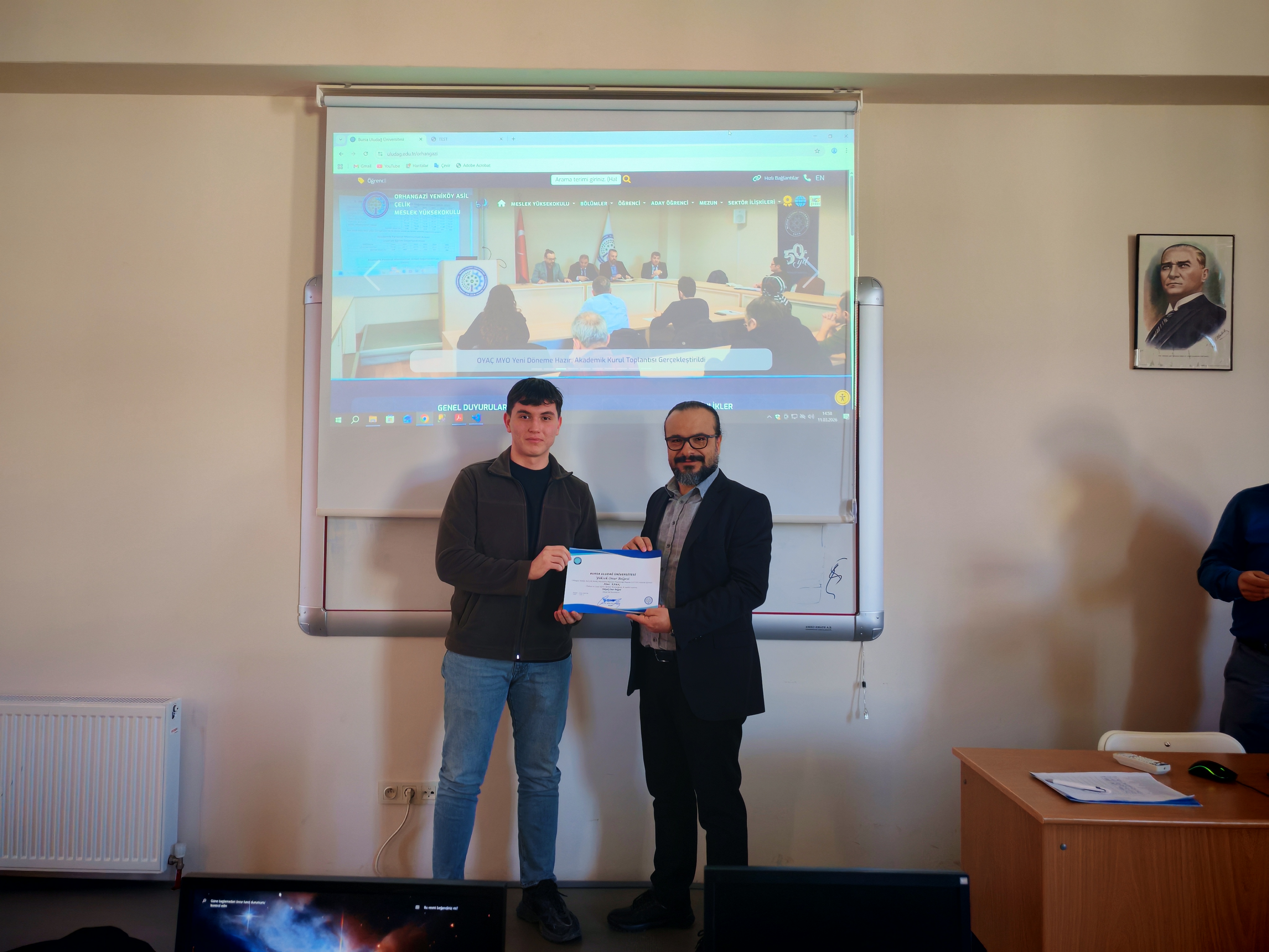 OYAÇ MYO bünyesinde eğitim veren Bilgisayar Programcılığı Programı'nda, geçtiğimiz güz dönemindeki akademik not ortalamalarına göre Yüksek Onur ve Onur Belgesi almaya hak kazanan başarılı öğrenciler için anlamlı bir belge takdim töreni gerçekleştirildi.
