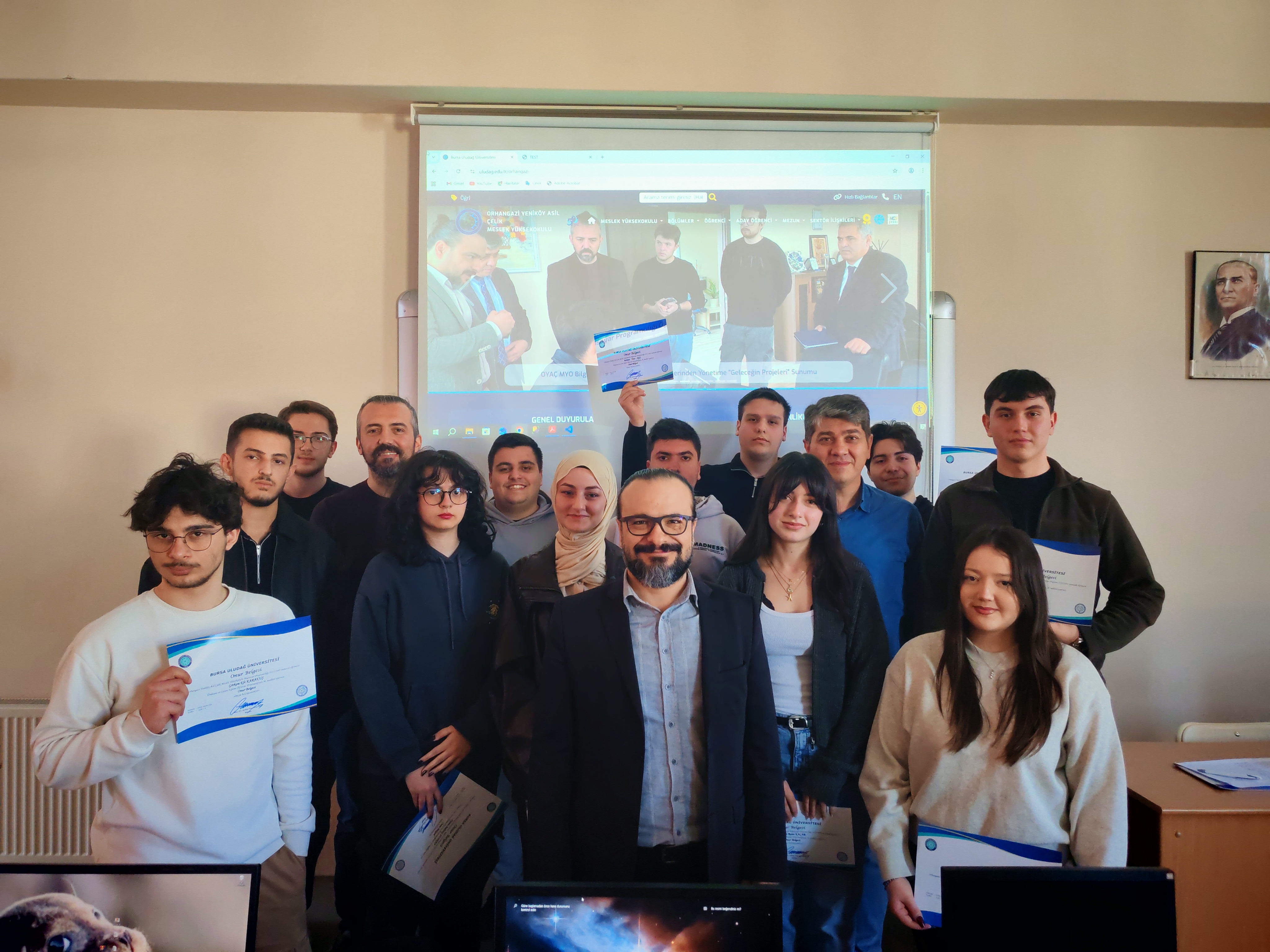 Öğrencilerin yoğun çalışma tempolarının ve disiplinlerinin bir karşılığı olan bu belgeler, aynı zamanda gelecekteki bilişim kariyerleri için de önemli bir motivasyon kaynağı oldu. Gurur dolu anlara sahne olan tören, belge takdiminin ardından akademisyenler ve öğrencilerin birlikte çektirdiği hatıra fotoğrafları ile sona erdi.