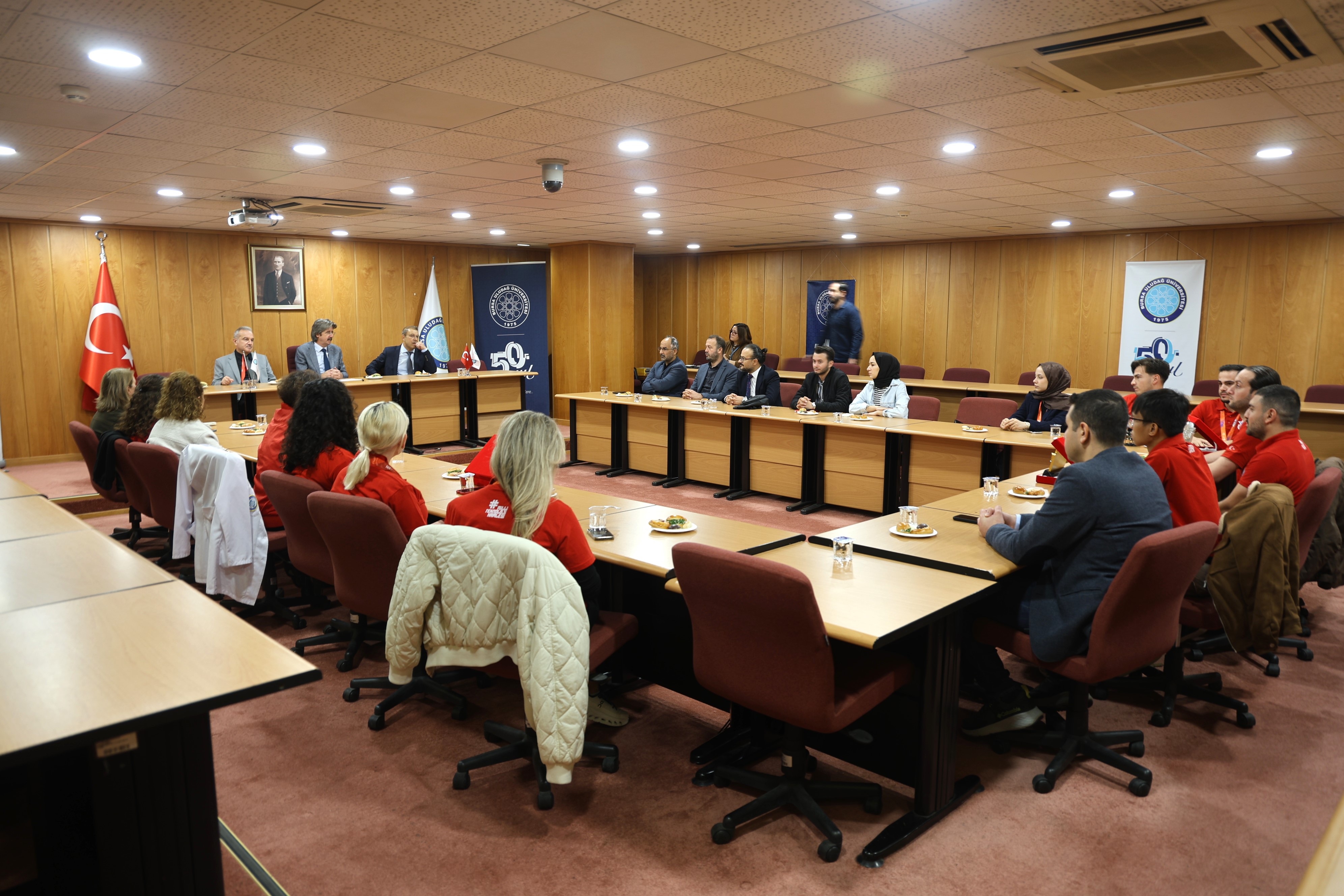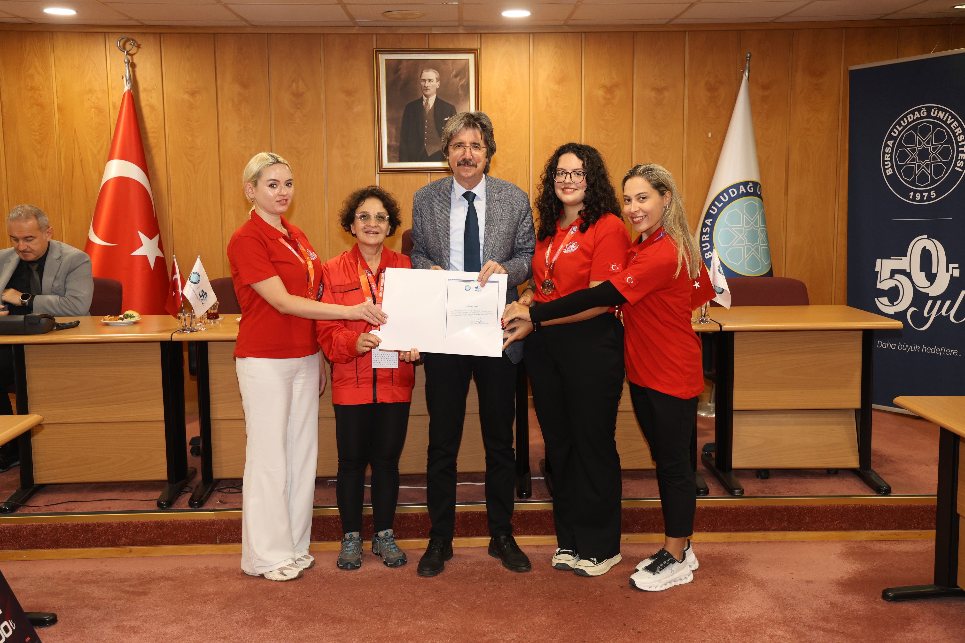 Bursa Uludağ Üniversitesi (BUÜ) Rektörü Prof. Dr. Ferudun Yılmaz, TEKNOFEST yarışlarında derece elde eden öğrenci topluluklarıyla bir araya geldi.