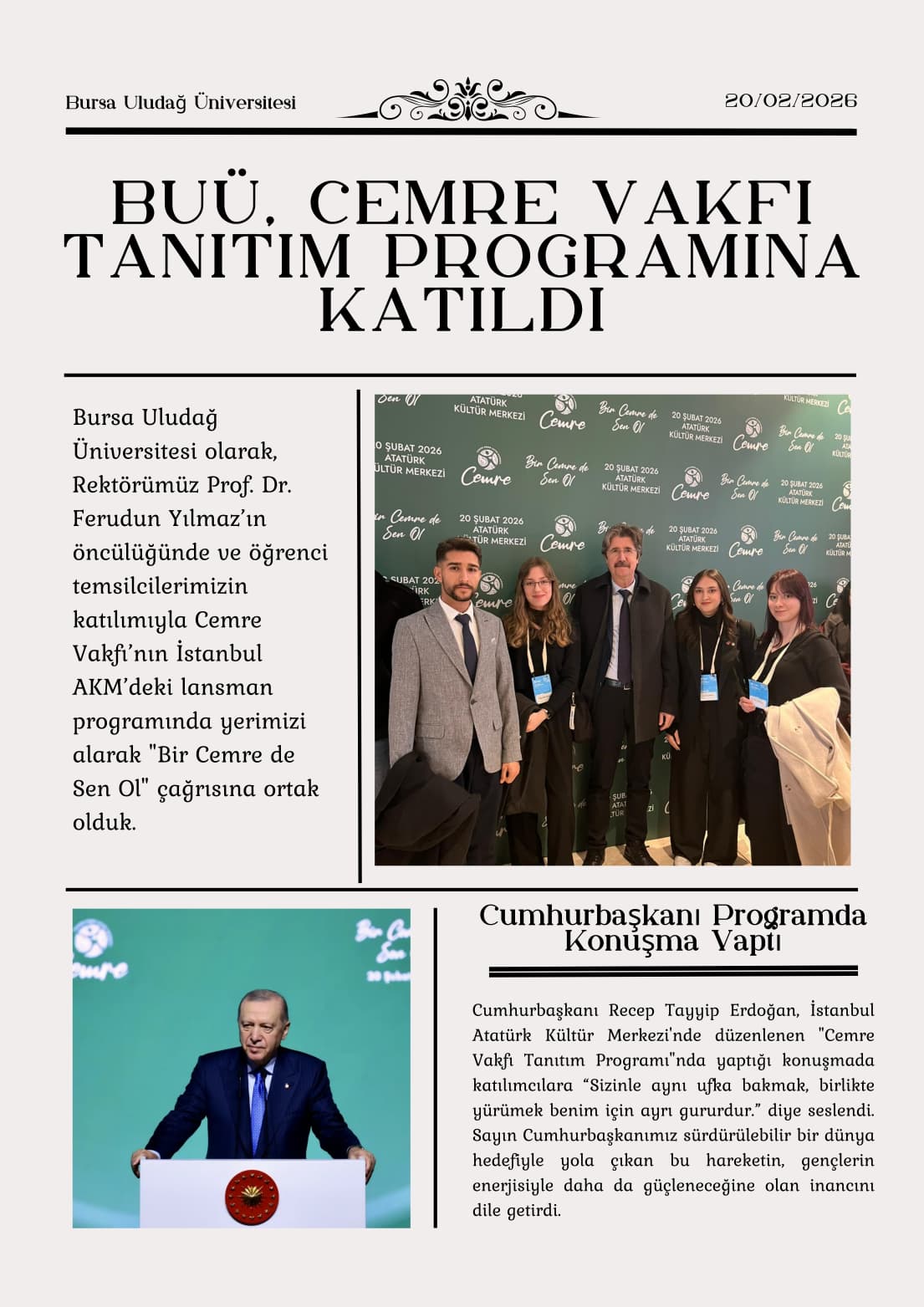 Bursa Uludağ Üniversitesi, Cemre Vakfı Tanıtım Programına Katıldı