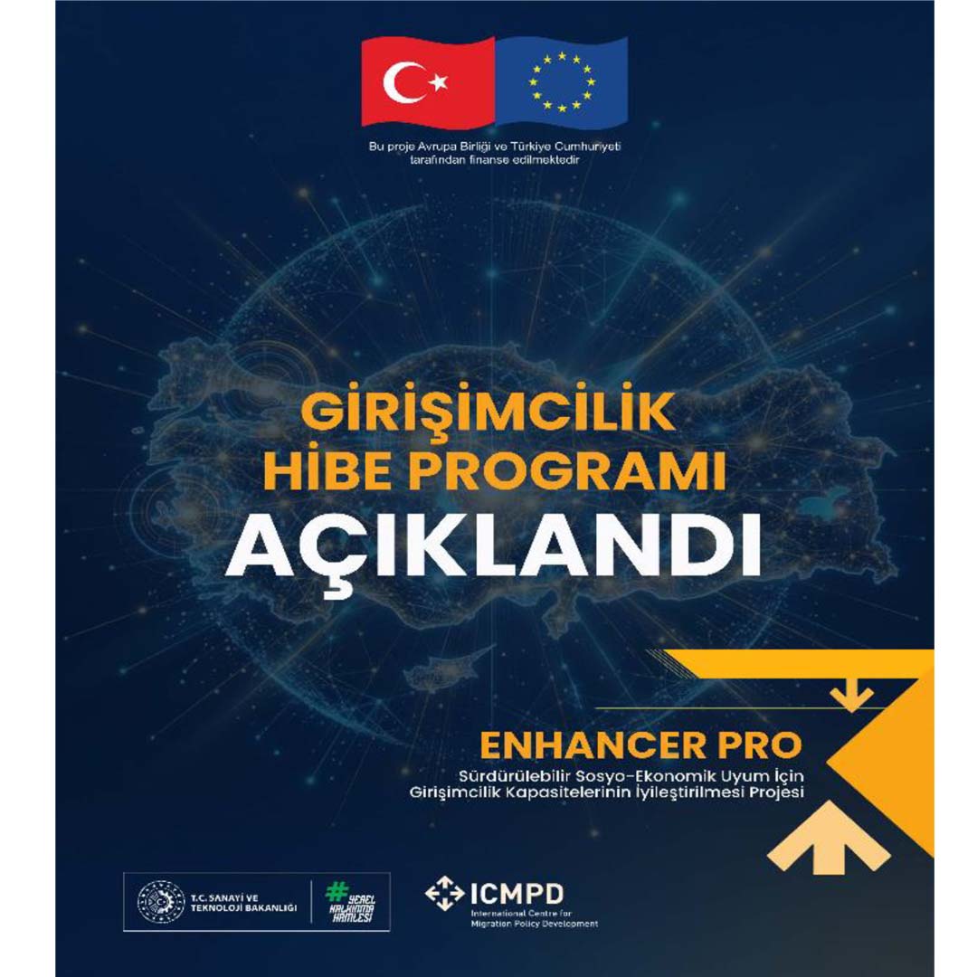 ENHANCER PRO Girişimcilik Hibe Programı Bilgilendirme Toplantısı: Avrupa Birliği tarafından fonlanan ve Uluslararası Göç Politikaları Geliştirme Merkezi (ICMPD) tarafından, T.C Sanayi ve Teknoloji Bakanlığı Kalkınma Ajansları Genel Müdürlüğü iş birliğiyle yürütülen “Sürdürülebilir Sosyo-Ekonomik Uyum İçin Girişimcilik Kapasitelerinin İyileştirilmesi Projesi (ENHANCER PRO)” kapsamında 18 ildeki girişimcilere yönelik “Girişimcilik Hibe Programı” ilan edilmiştir. Söz konusu hibe programı bünyesinde sunulacak desteklere, başvuru koşullarına ve uygulama süreçlerine ilişkin detayların paylaşılacağı; ICMPD yetkililerinin katılımıyla gerçekleştirilecek olan Bursa ili yüz yüze bilgilendirme toplantısı22 Nisan 2026 Çarşamba günü saat 10:00’daBursa Nilüfer Ramada by Wyndham Hotel’de gerçekleştirilecektir. Program Özeti: Hedef kitle: İş fikri olan ve şirket kurmayı planlayan girişimciler (Türk vatandaşları, GKAS - Geçici Koruma Altındaki Suriyeliler ve UKAK -