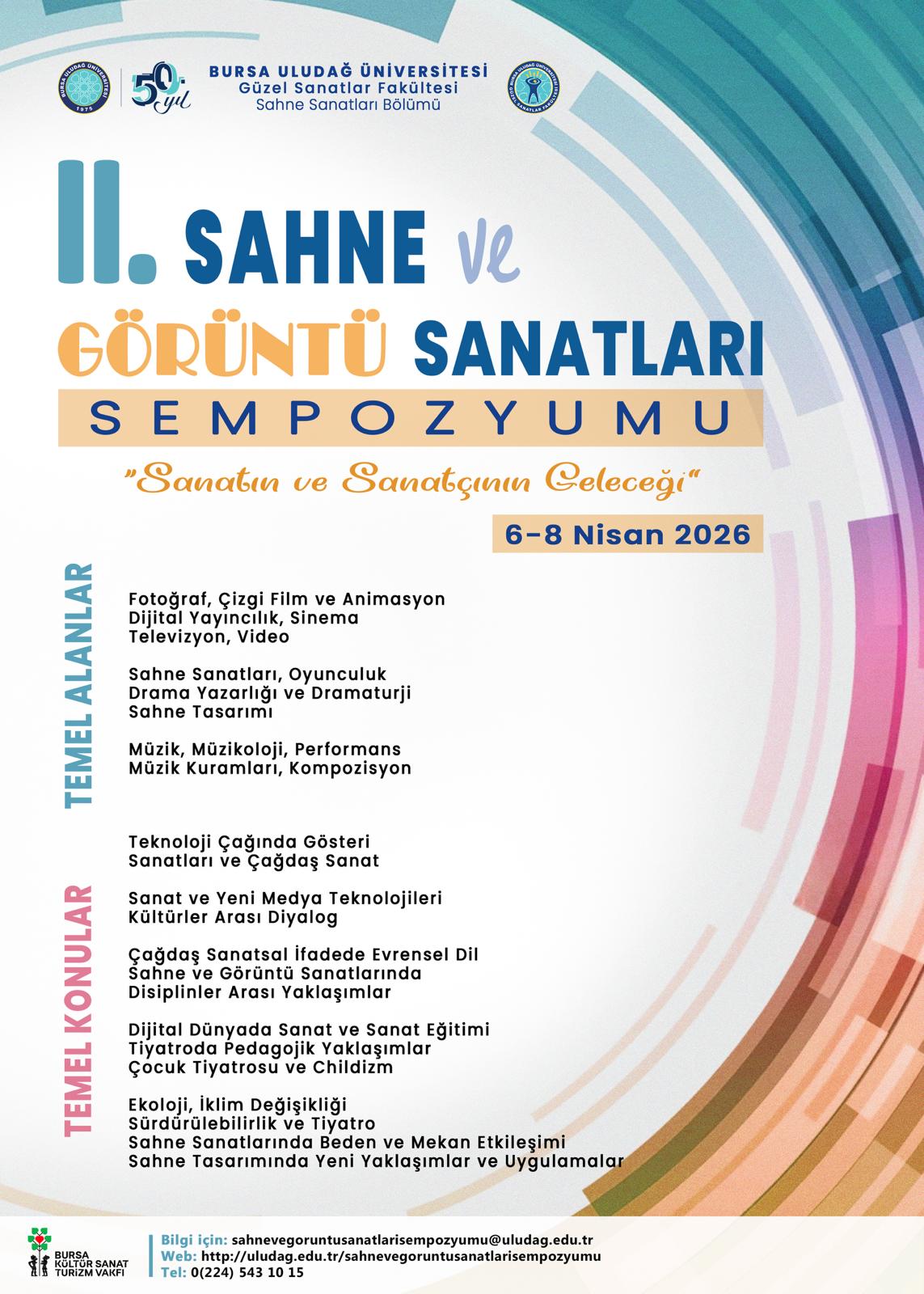 Bursa Uludağ Üniversitesi Güzel Sanatlar Fakültesi Sahne Sanatları Bölümü, 6-7-8 Nisan 2026 tarihlerinde "II. Ulusal Sahne ve Görüntü Sanatları Sempozyumu" düzenleyecektir.