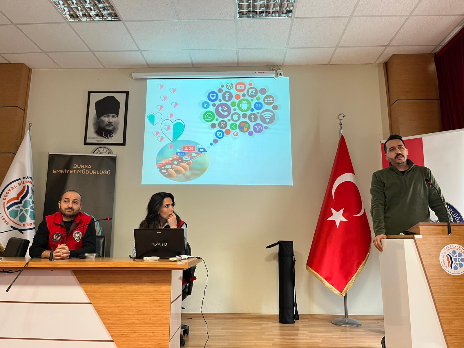 Bursa Emniyet Müdürlüğü Terörle Mücadele Şube Müdürlüğü, dijital çağda artan çevrimiçi radikalleşme risklerine dikkat çekmek amacıyla öğrenciler için bilgilendirici bir seminer gerçekleştirdi. Farkındalık Seminerleri kapsamında Bursa Emniyet Müdürlüğü Terörle Mücadele Şube Müdürlüğü Komiseri Sayın Serkan ACAR, polis memurları Sayın Ayşegül NAİR ve Sayın Mustafa Kemal DURAN, internet ortamında gençlerin karşı karşıya kaldığı tehditleri detaylı biçimde anlattı.