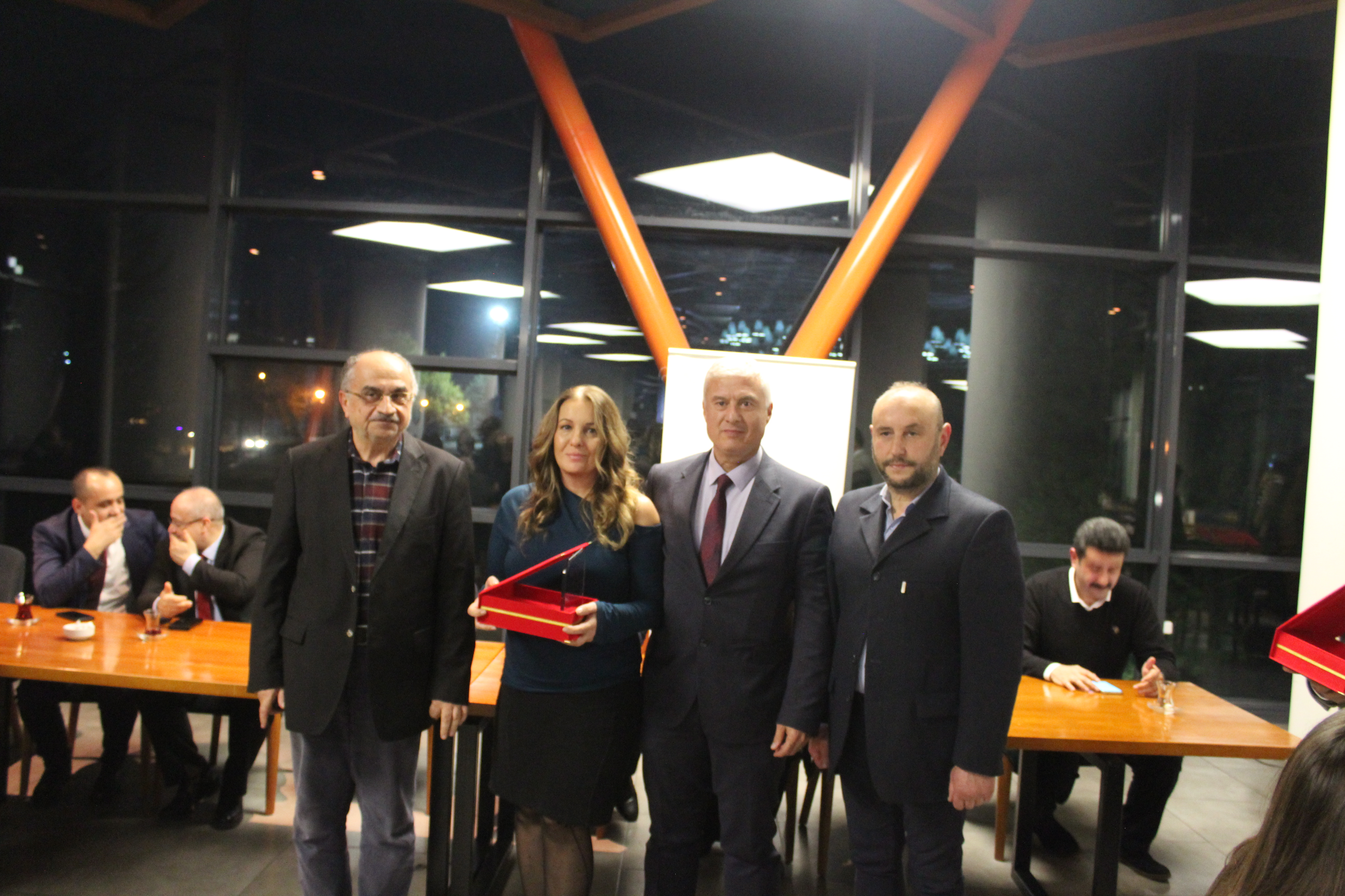 Yemek programının en anlamlı bölümlerinden biri, uzun yıllardır Yüksekokula destek sağlayan ve öğrencilerin uygulamalı eğitim süreçlerine aktif katkıda bulunan firmalara plaket takdim edilmesiydi. Yüksekokul öğrencilerine staj imkânı tanıyan, onların mesleki becerilerini geliştirmelerine katkı veren firma sahiplerine verilen plaketler, üniversitenin sektöre duyduğu teşekkürün ve sürdürülebilir iş birliği anlayışının sembolü olarak değerlendirildi.
