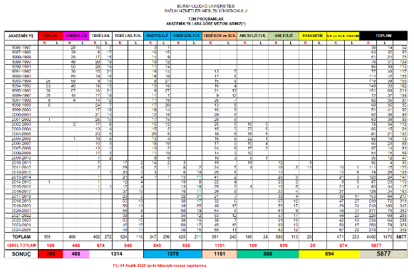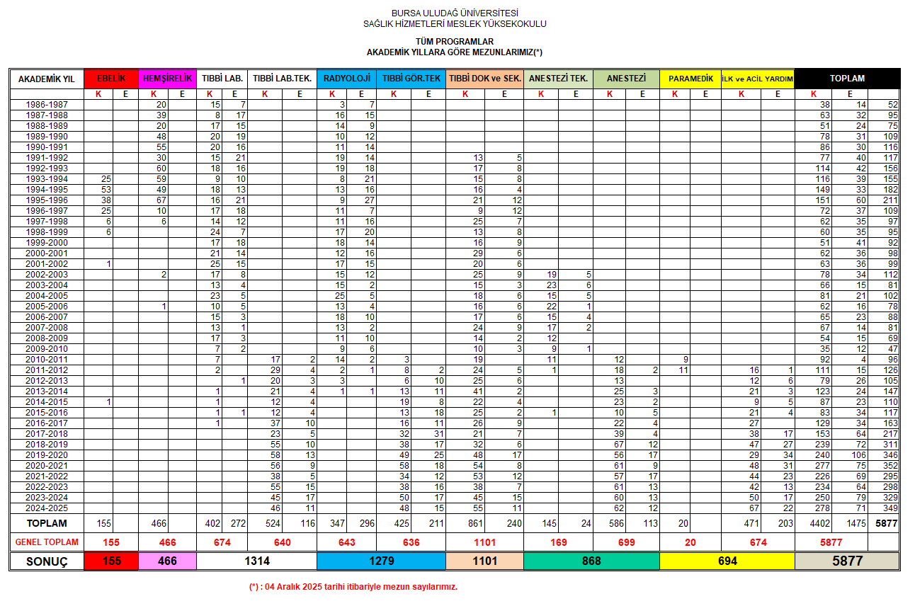 | (*) Ebelik ve Hemşirelik programları kapatılmıştır. |