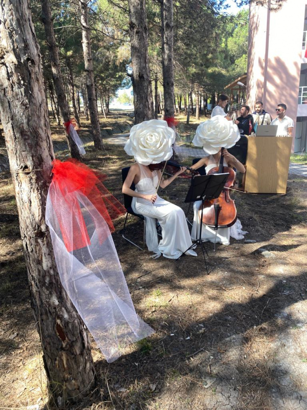 Mezunlara çello ve keman eşliğinde pilav, kavurma, Mustafakemalpaşa peynir tatlısı, ayran, su ve çay ikramına geçildi.