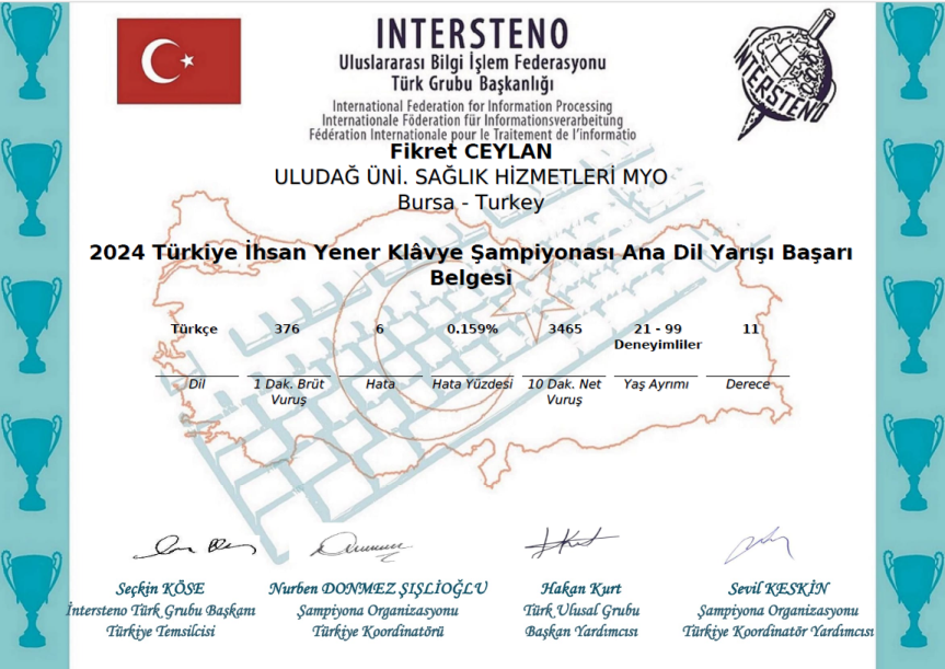 - Programın öğretim elemanı Öğr.Gör.Fikret CEYLAN dakikada 375 vuruş ve dakikada net 69 kelime ile Türkiye 11’inciliği,