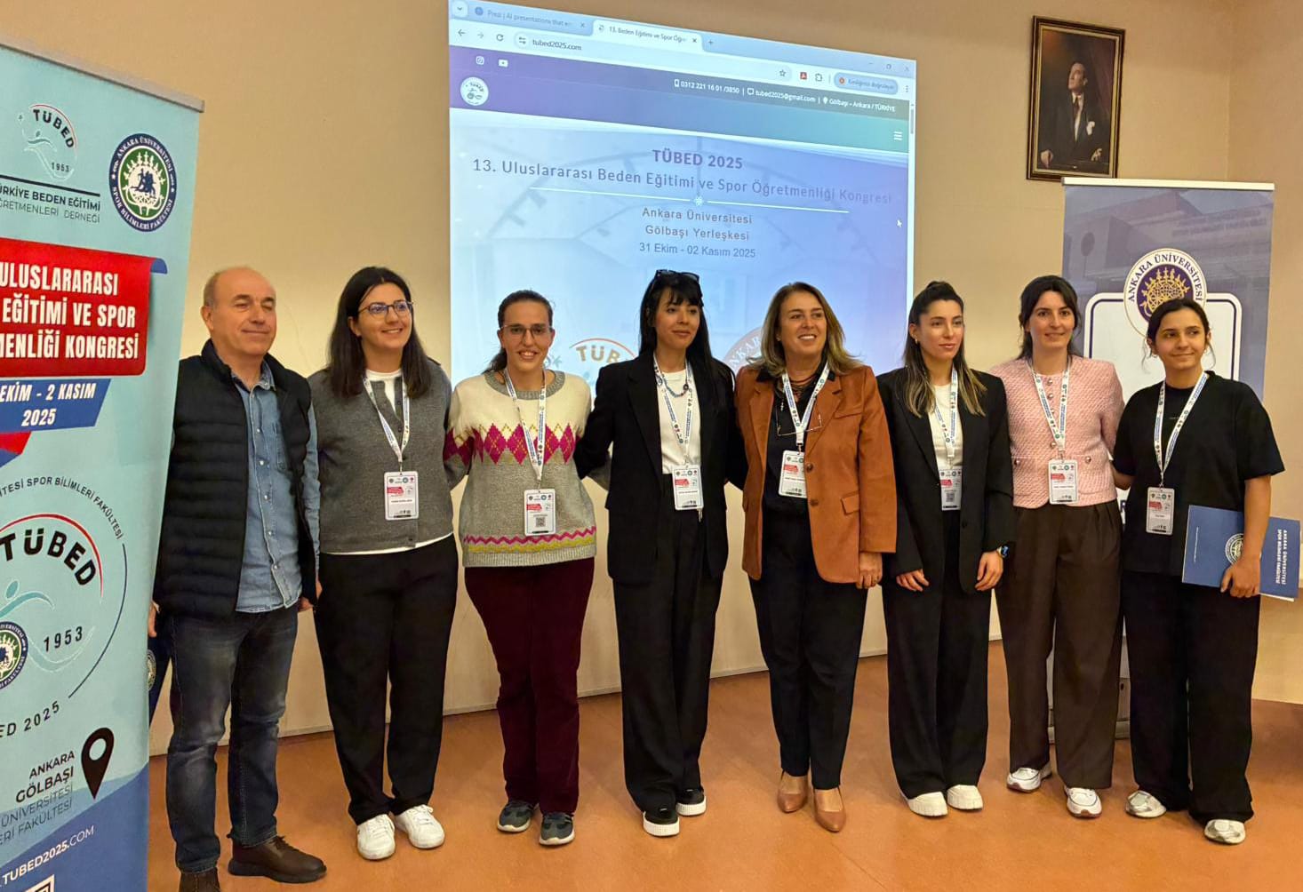 Bursa Uludağ Üniversitesi Spor Bilimleri Fakültesi öğretim üyeleri ve öğrencileri, 31 Ekim – 2 Kasım 2025 tarihleri arasında Ankara Üniversitesi Gölbaşı Yerleşkesinde düzenlenen 13. Uluslararası Beden Eğitimi ve Spor Öğretmenliği Kongresi (TÜBED 2025)’ne katılım sağladı. Fakültemiz öğretim üyelerinden Prof. Dr. Recep Görgülü, kongrede davetli konuşmacı olarak yer aldı. “Zihinle Oyun Oynamak: Beden Eğitiminde Göreve Özgü Komutların İronik Etkisi” başlıklı sunumunda Prof. Görgülü, beden eğitimi derslerinde öğretmenler tarafından kullanılan sözel komutların öğrencilerin motor performansı ve algısal süreçleri üzerindeki etkilerini ele aldı. Uzun yılların araştırmalarına dayanan bu sunum, öğretim dili, bilişsel yönlendirme ve hareket performansı arasındaki ilişkiye odaklanarak katılımcıların büyük ilgisini topladı.