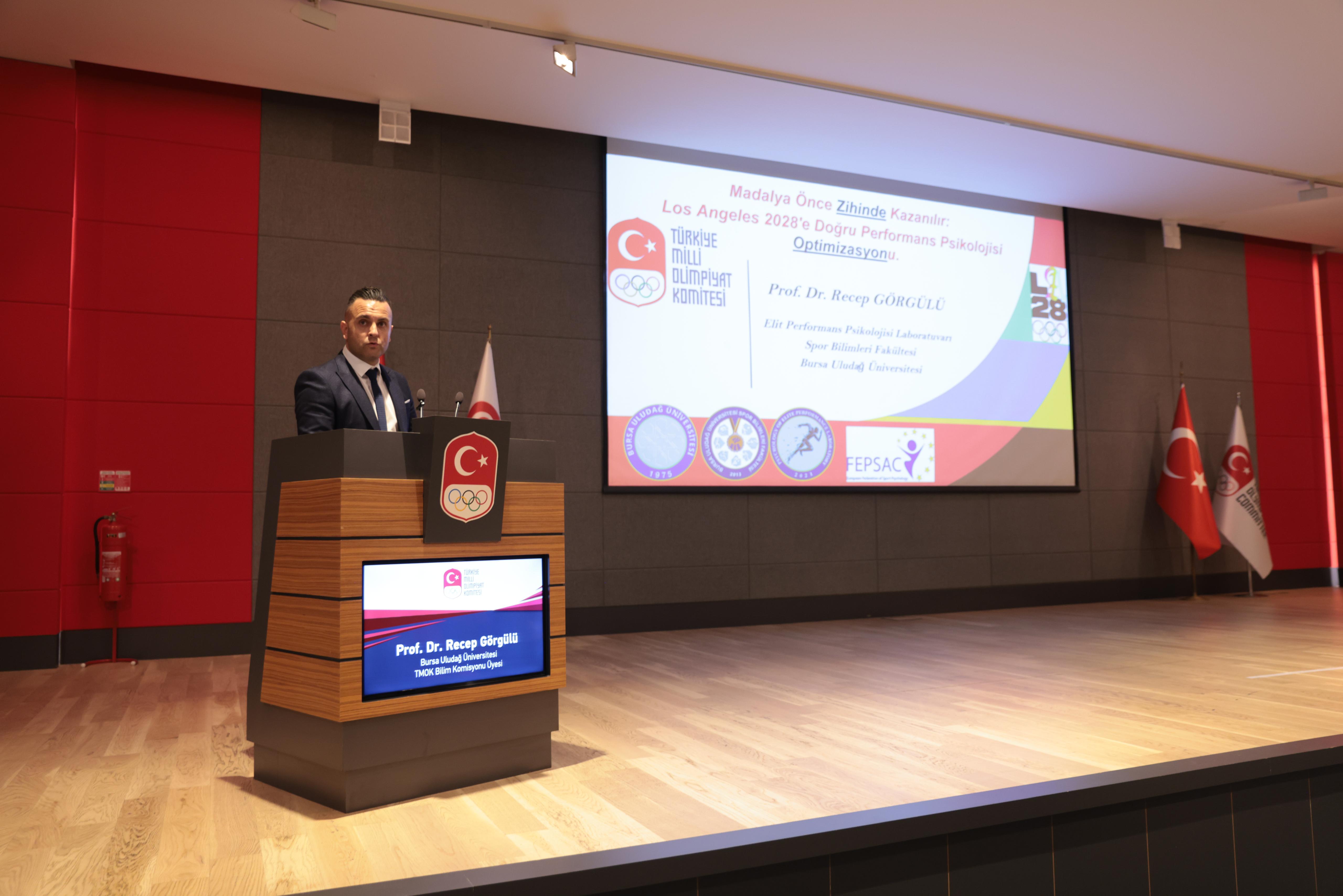 Sempozyum kapsamında Fakültemiz Öğretim Üyesi ve aynı zamanda TMOK Atletik Performans Bilim Komisyon Üyesi Prof. Dr. Recep Görgülü, “Madalya Önce Zihinde Kazanılır: LA 2028'e Doğru Performans Psikolojisi Optimizasyonu” başlıklı konuşmasıyla katılımcılara önemli bilgiler aktardı. Görgülü, performans psikolojisi alanındaki güncel yaklaşımları, sporcuların zihinsel hazırlık süreçlerini ve Los Angeles 2028 Olimpiyatları’na hazırlıkta uygulanabilecek optimizasyon stratejilerini ele aldı. Sempozyumda ayrıca FEPSAC Başkanı ve yönetim kurulu üyeleri, akademisyenler, spor psikologları, öğrenciler, performans bilimcileri ve profesyoneller bir araya geldi. Oturumlarda spor psikolojisi, zihinsel dayanıklılık, sporcu sağlığı, antrenman yükü, performans analizi, toparlanma ve beslenme gibi temel konular masaya yatırıldı.