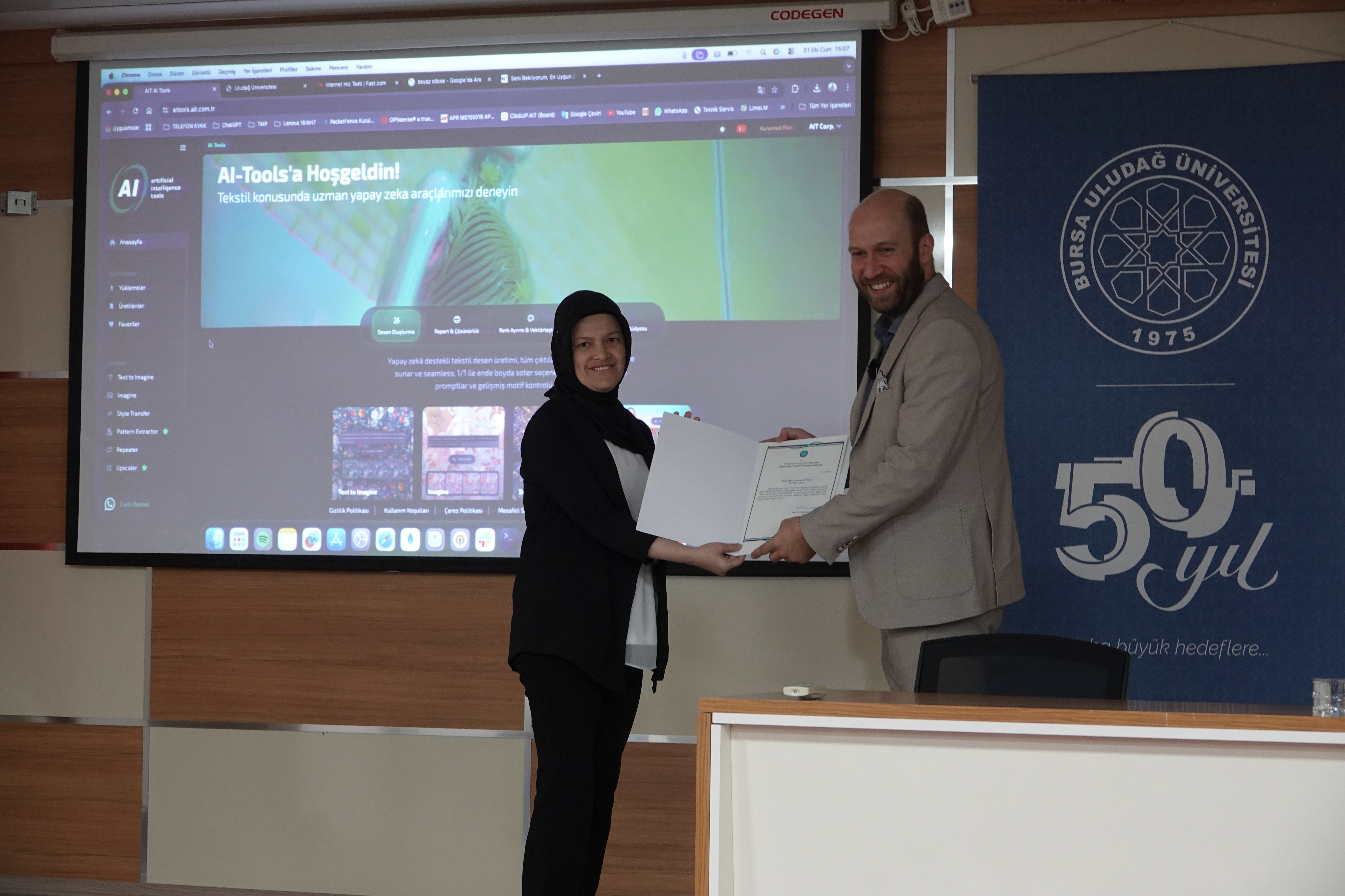 BUÜ TBMYO Tasarım Bölümü Moda Tasarım Programı Güz yarıyılı seminer programı kapsamında, 1996 yılından bu yana desen tasarım, dijital numune ve metraj baskı konularında yazılım, donanım, sarf malzeme ve teknik destek sağlayan Türkiye’nin ilk ve tek kuruluşu Bilgisayar Sis. Makine San. Tic. Ltd. firması (AIT), takım lideri Sayın Umut Savaşım Çeliker’in konuk edildiği “Moda Tasarımında Sürdürülebilirlik ve İnovasyon İçin AIT Yapay Zeka Çözümleri” konulu seminer gerçekleştirilmiştir. Seminer, AIT firma temsilcileri, Bursa Uludağ Üniversitesi TBMYO Moda Tasarım Programı öğrencilerimiz ve öğretim elemanlarımızın katılımı ile gerçekleştirilmiştir.