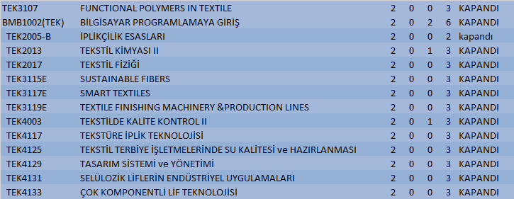 Kapanan Seçmeli Derslerle İlgili Duyuru ( TEK3107 Functional Polymers in Textile ) - 29.09.2025