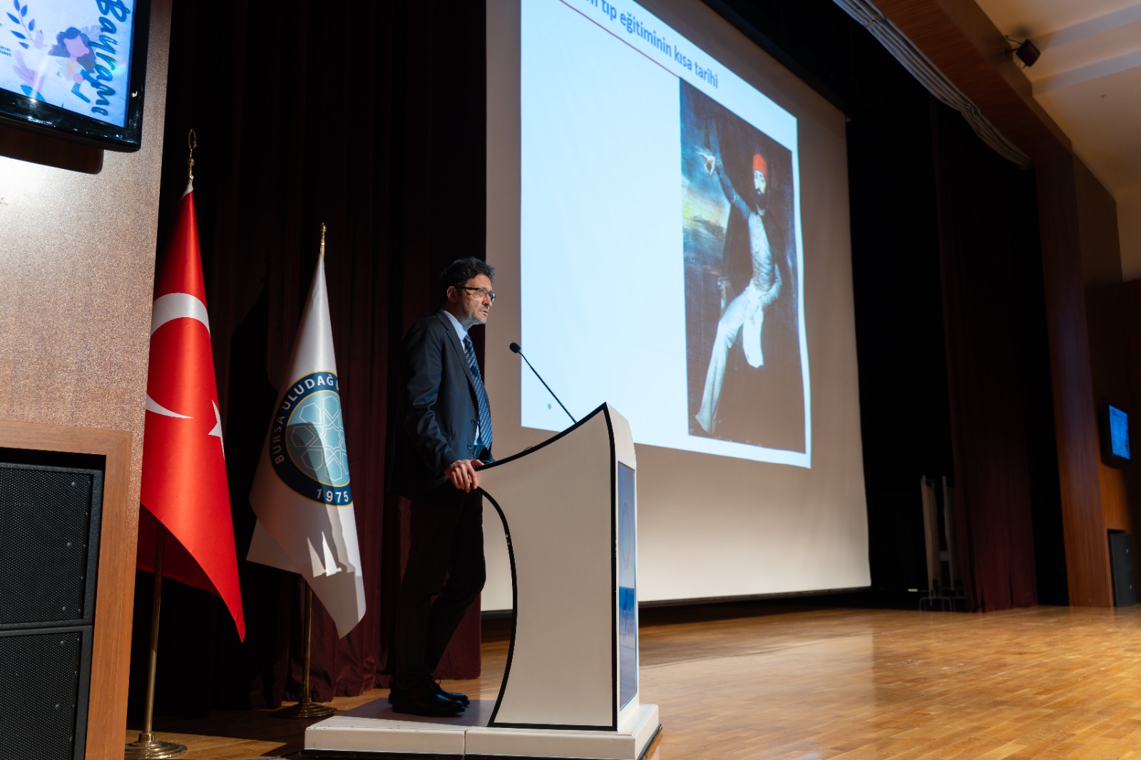 Tıp Tarihi ve Etik Anabilim Dalı Öğretim Üyesi Prof. Dr. Murat Civaner, "14 Mart Tıp Öğrencilerinindir" başlıklı sunumuyla tıp bayramının tarihsel kökenlerini dinleyicilerle paylaştı.