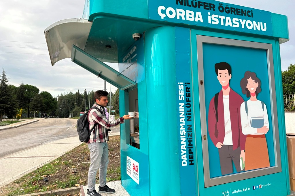 4. Nilüfer Belediyesi iş birliğiyle kampüs alanına kurulan öğrenci çorba istasyonu sayesinde ücretsiz çorba hizmeti sunulmaktadır,