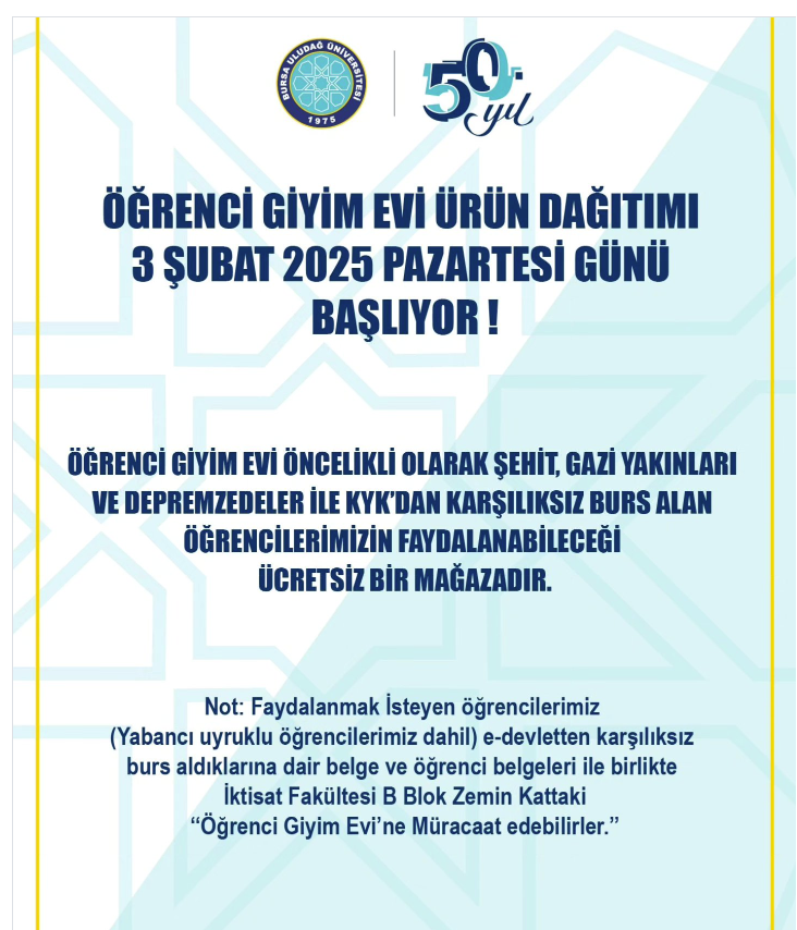 Bursa Uludağ Üniversitesi’nde öğrencilerin temel ihtiyaçlarını desteklemeye yönelik destek uygulamaları hayata geçirilmiştir. Bu doğrultuda;