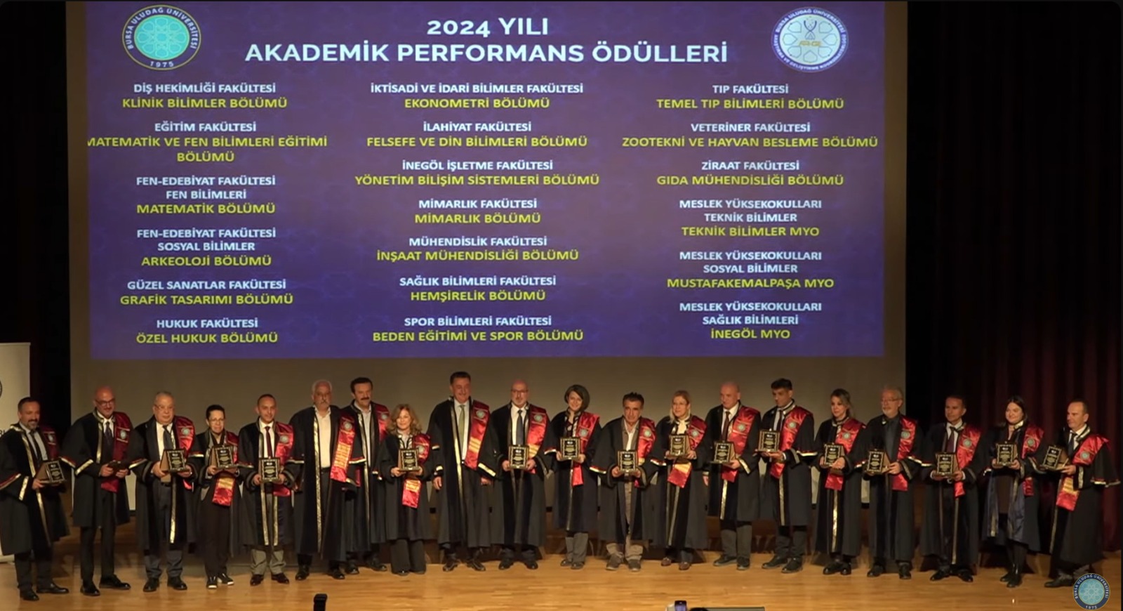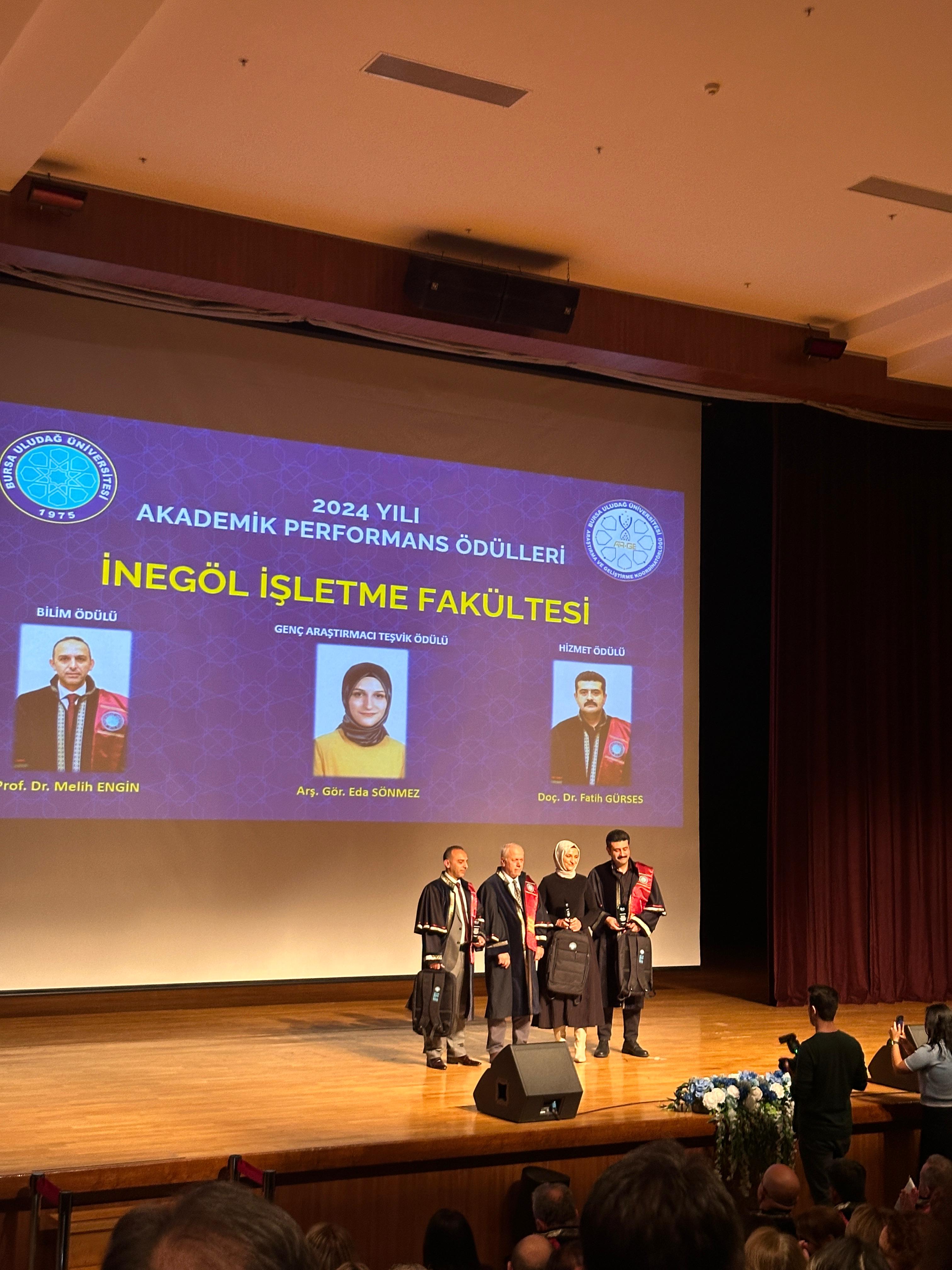Bursa Uludağ Üniversitesi Ar-Ge Koordinatörlüğü tarafından düzenlenen 2024 Yılı Akademik Performans Ödül Töreninde, İnegöl İşletme Fakültesi Yönetim Bilişim Sistemleri Bölümü önemli bir başarıya imza atarak 4 farklı kategoride ödül almaya hak kazandı.