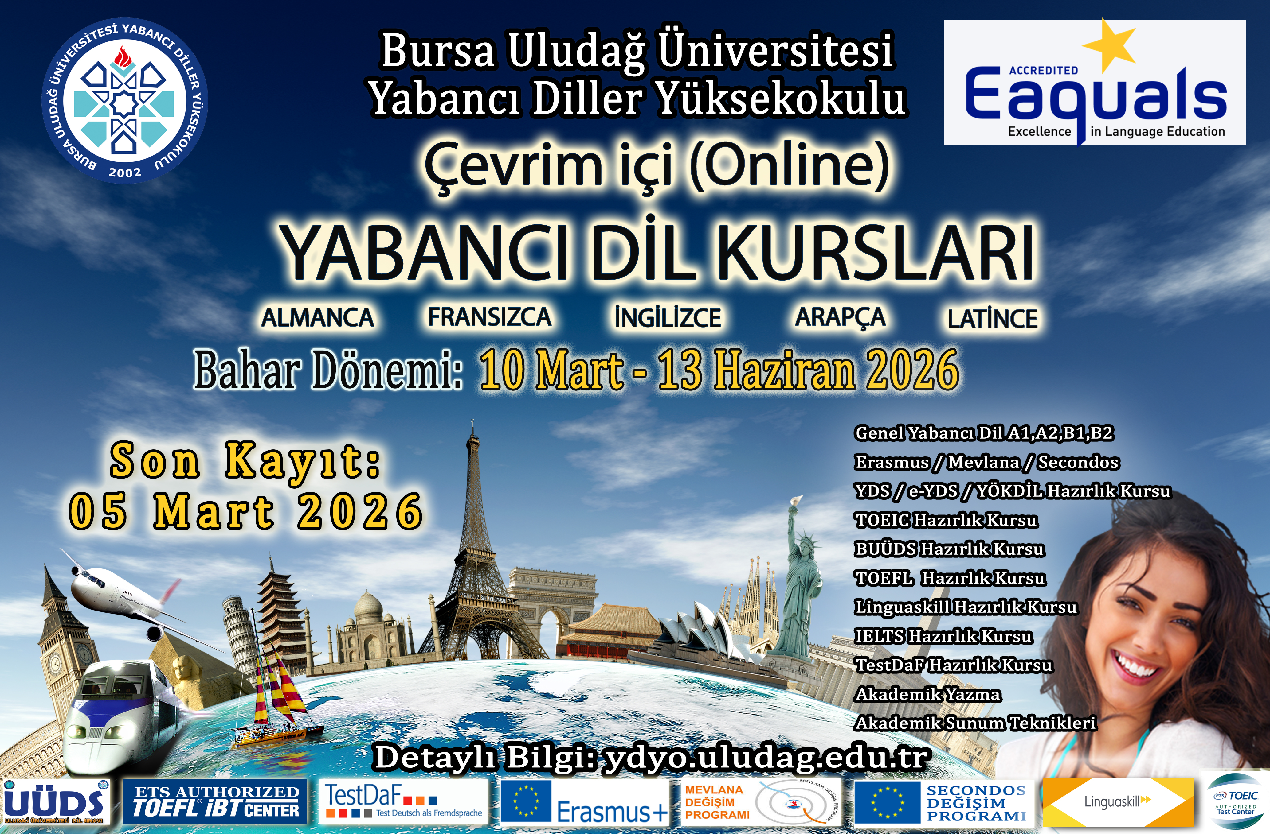 Kayıt işlemlerini gerçekleştirmeden önce aşağıdaki Yabancı Dil Kurs Bilgilendirmesi ile Kurs ücretlerini dikkatlice okuyunuz. Sorularınız için ogrenciydyo@uludag.edu.tr adresine mail atabilir, 0 224 294 26 56 nolu telefondan Öğrenci İşlerine bağlanabilirsiniz.