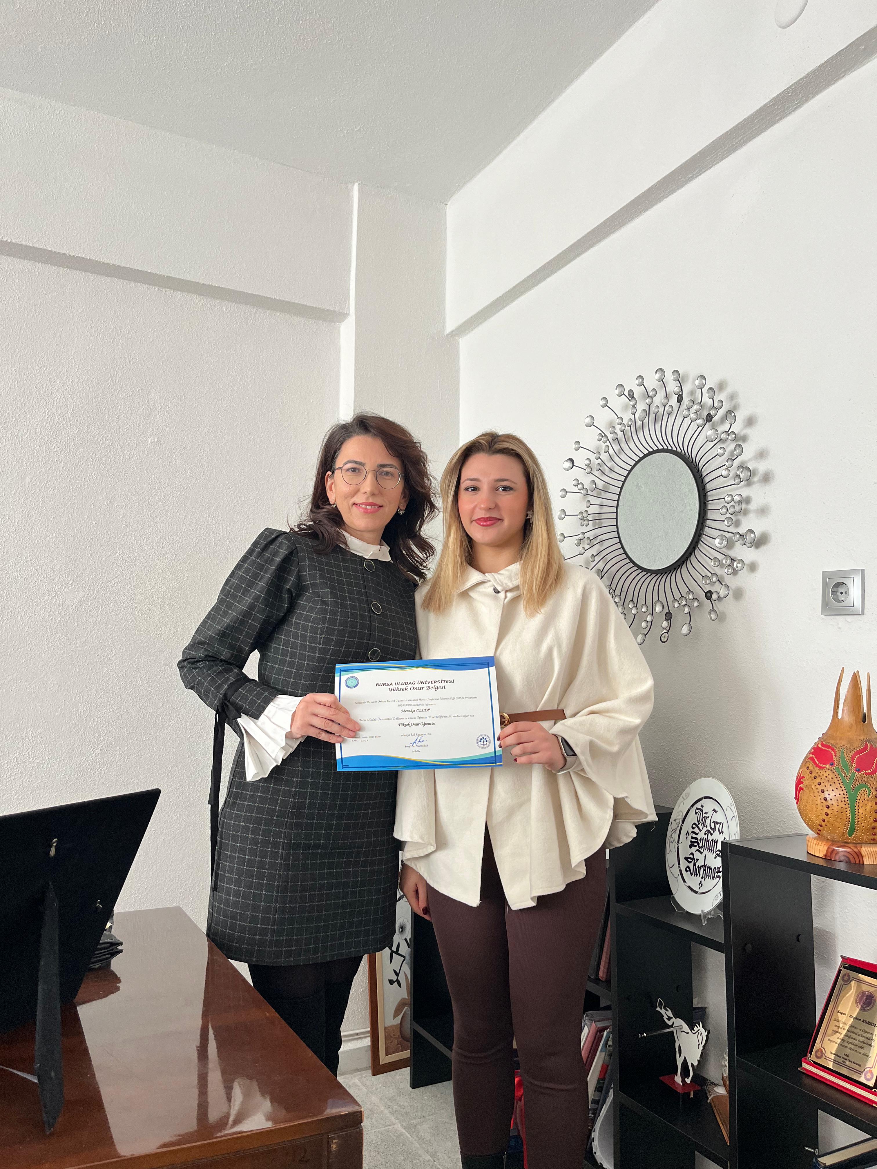Sivil hava ulaştırma işletmeciliği öğrencileri yüksek onur ve onur belgelerini aldılar.